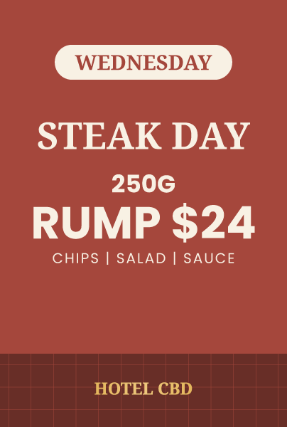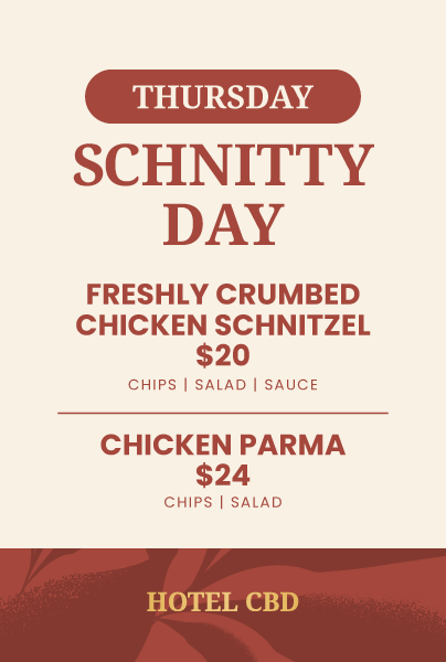 The Hotel CBD bistro serves up delicious pub classics for lunch and dinner every day of the week. From fried chicken to woodfired pizzas, rump steak and chicken schnitzel, to healthy salads. We also have a kids menu that’ll keep the little ones happy, with a free Calippo and activity pack included, see what lunch and dinner specials we are running today! Download our bistro menu or reserve a table now.